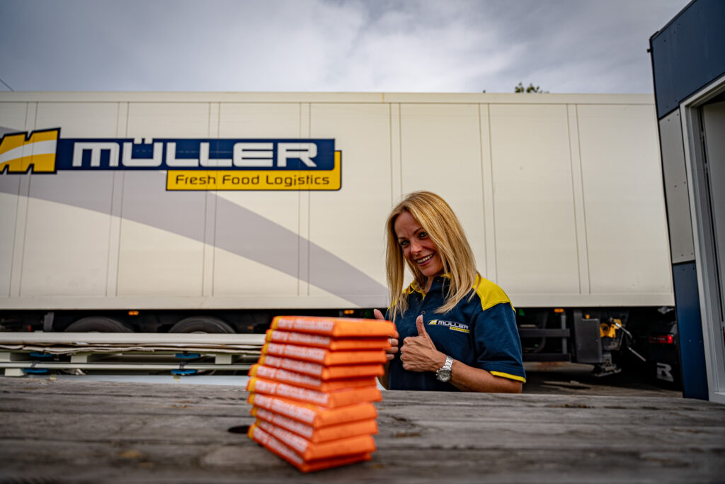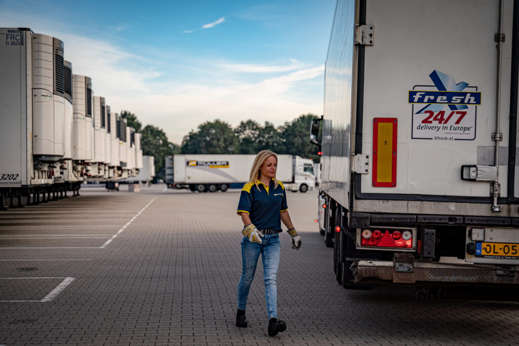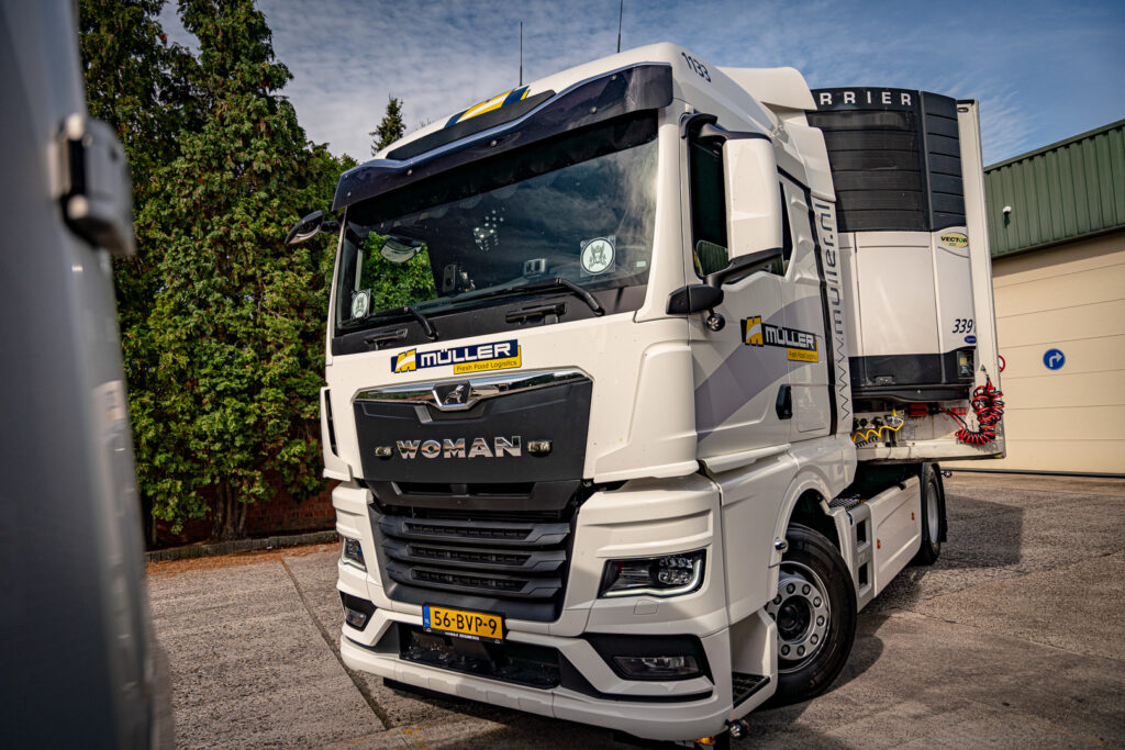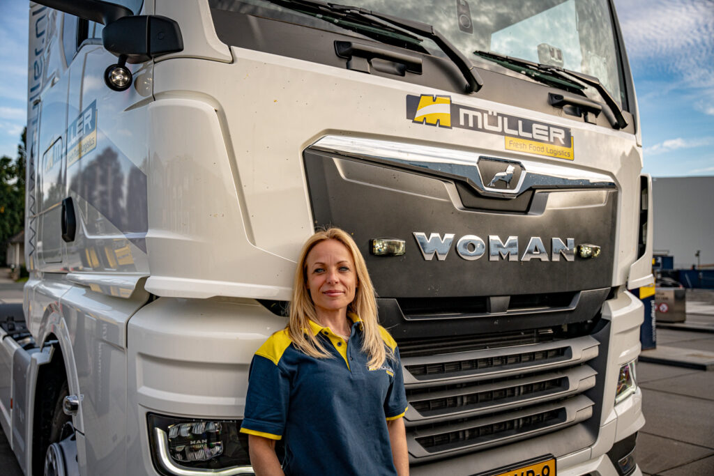 Voor deze reportage ging ik op pad met Fleur Deetman, vrachtwagenchauffeur bij Müller Fresh Food Logistics. Fleur rijdt in een bijzondere truck: een MAN, of beter gezegd… een WOMAN. Speciaal bestickerd door haar werkgever om vrouwelijke chauffeurs in de spotlight te zetten. En dat is niet voor niets, want vrouwen zijn in opmars in de transportwereld – en Fleur is daar een prachtig voorbeeld van.