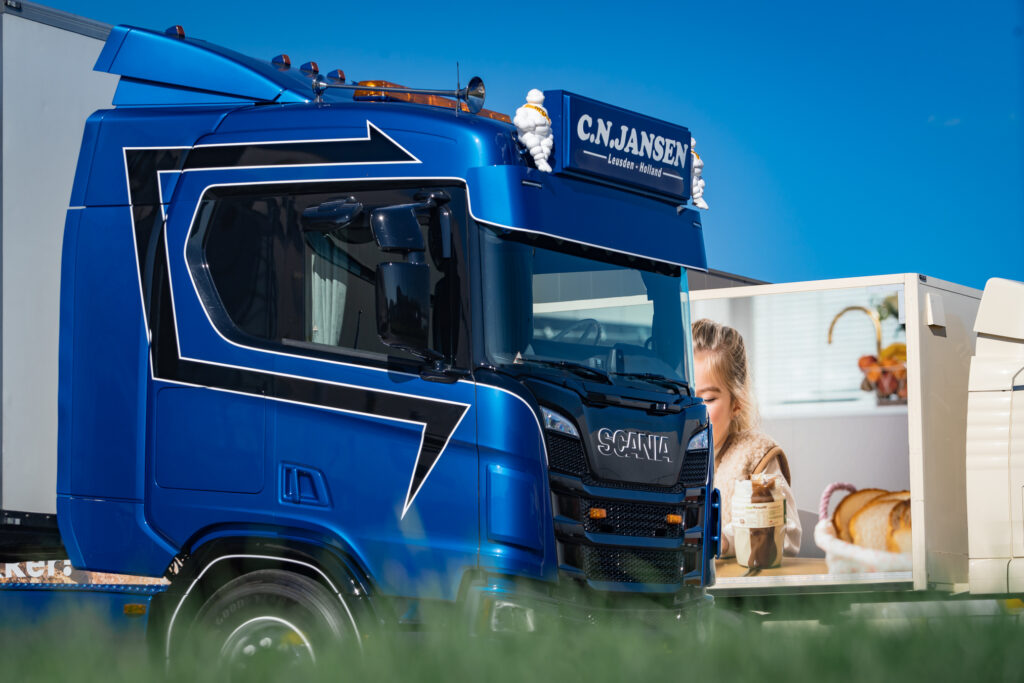 In februari 2023 besloot Casper (28, Leusden) om zijn leven om te gooien. Jarenlang werkte hij als chauffeur in loondienst, maar het idee om zelfstandig verder te gaan liet hem niet los. “Ik wilde meer vrijheid, meer zeggenschap over mijn werk,” vertelt hij, terwijl hij vol trots naast zijn Scania R460 in Toyota-blauw staat. “Dus ik huurde eerst een truck en begon rustig. Pas in mei 2024 heb ik mijn eigen wagen gekocht – precies zoals ik hem wilde: van de kleur tot de stoffering.”