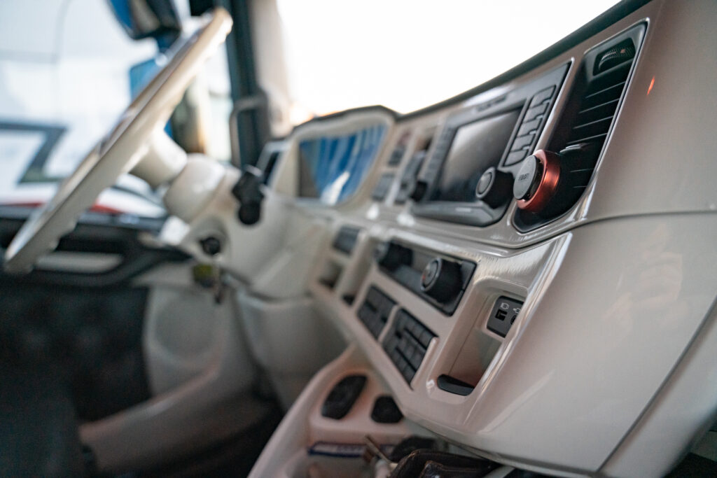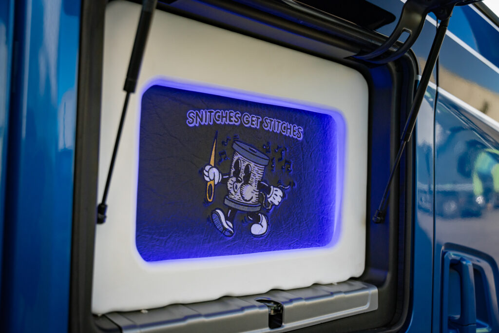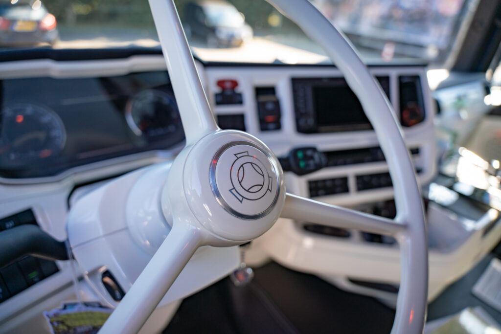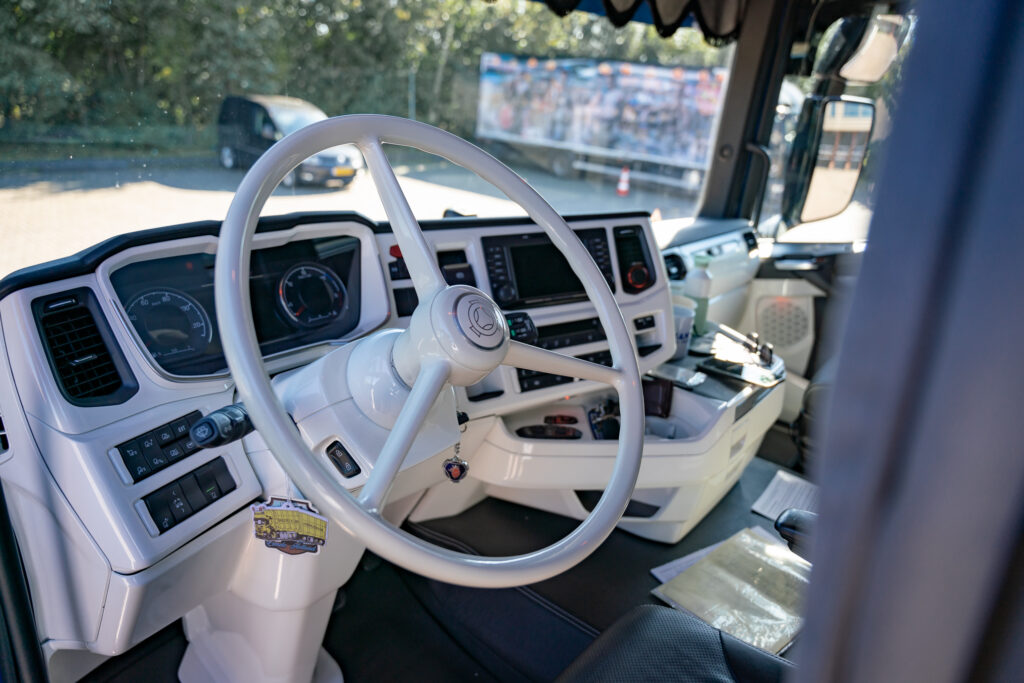 De truck is inmiddels zijn visitekaartje, met een opbouw van AVDI en interieurstoffering door Van Dijk. “Niet alleen de buitenkant moest kloppen, ook het gevoel als ik instap. Dit is mijn plek.”