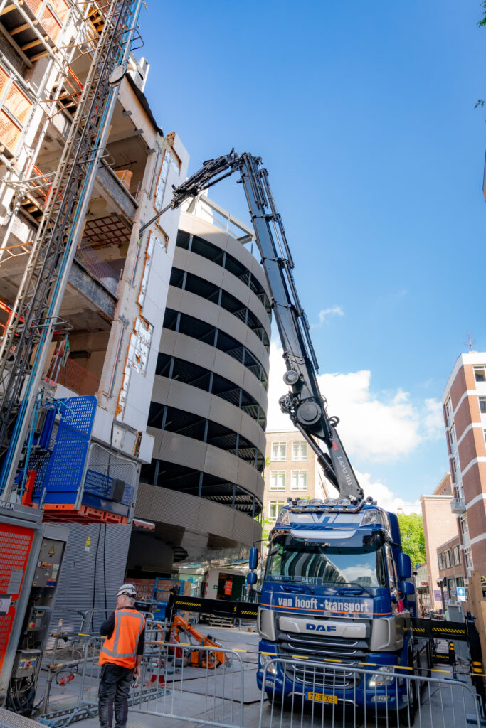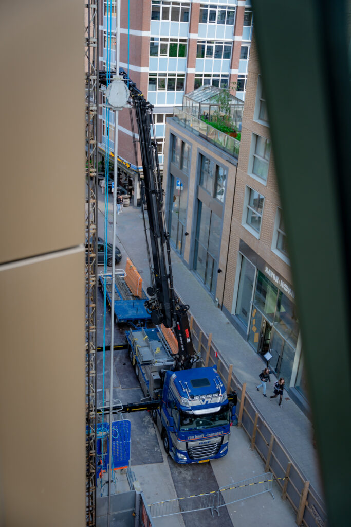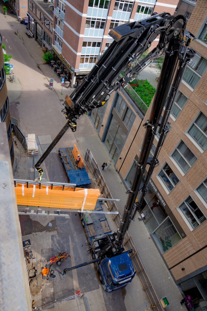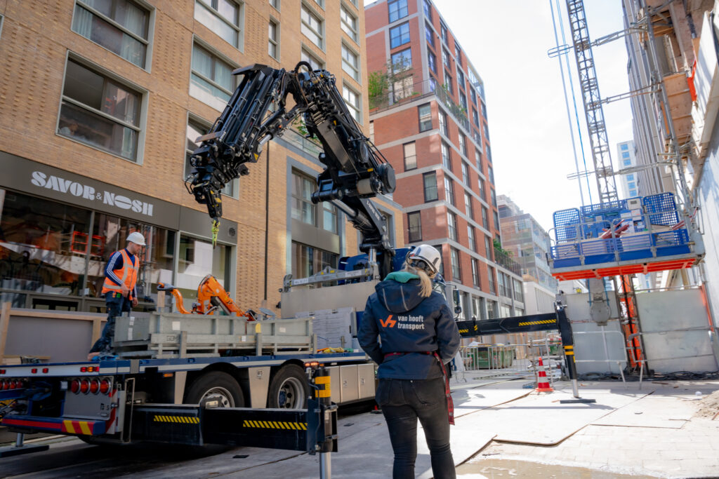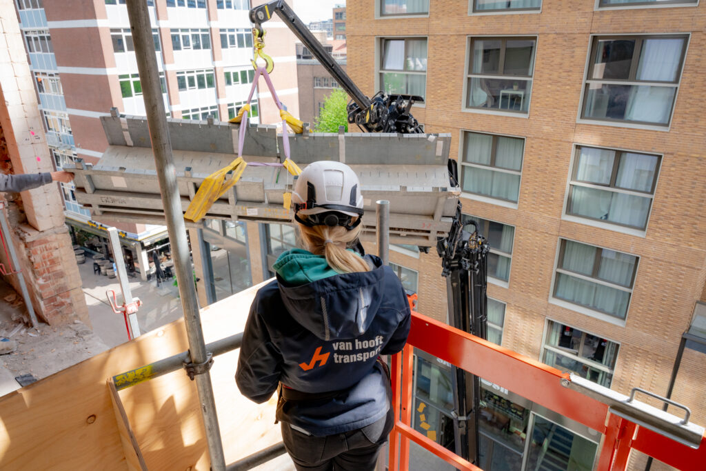 Fabienne is a truck driver and influencer. That day she drove a crane truck from Van Hooft Transport to a construction site in Rotterdam, with a load of large glass plates. I was allowed to capture everything: from loading and unloading to the precise lifting work with the crane.