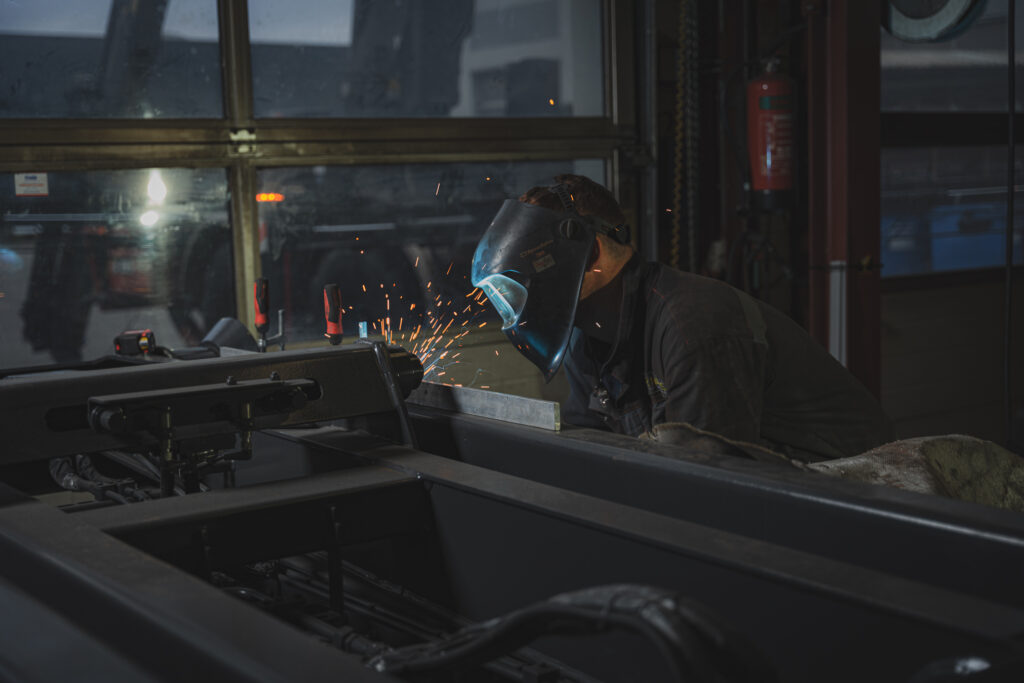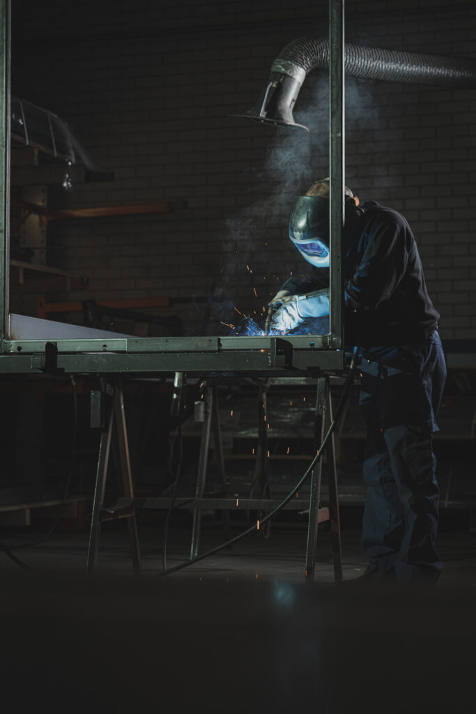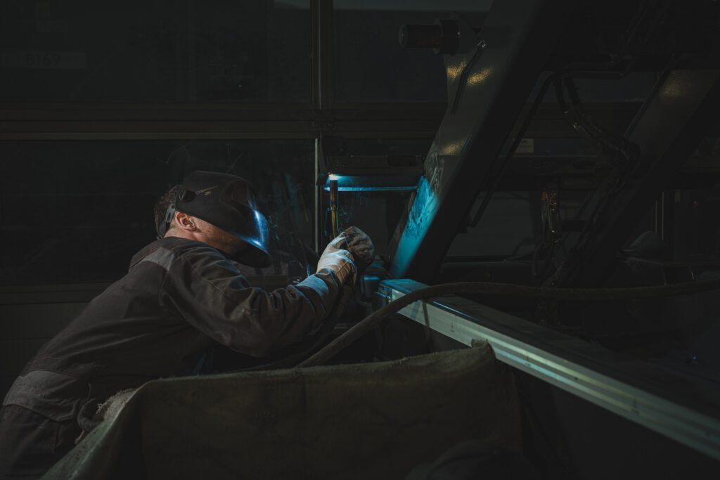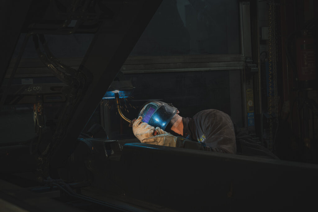 Als fotograaf in transport en logistiek sta ik vaak langs de snelweg, op laadperrons of in distributiecentra. Maar soms kom ik terecht op plekken waar het allemaal begint – in de werkplaats. Voor deze opdracht maakte ik een serie industriële foto’s in opdracht van een carrosseriebouwer. Iets minder chauffeurs, iets meer lassers. Maar nog steeds transport – alleen vanuit een ander perspectief.