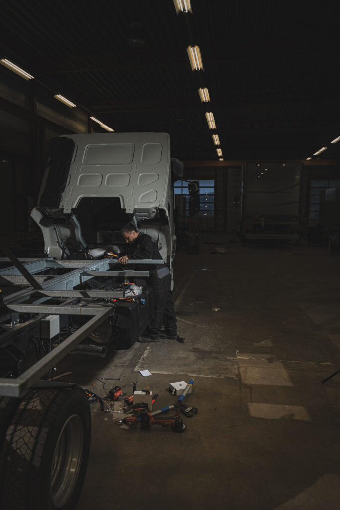 In plaats van vrachtwagens op de weg draaide het deze keer om de mensen die ze opbouwen. Monteurs, plaatwerkers, lassers. Mensen die met vakmanschap en precisie werken aan het materiaal waar anderen straks dagelijks mee rijden. De sfeer is anders: ruiger, technischer, en met een flinke dosis concentratie. Maar ook hier geldt – net als onderweg – het draait om mensen en hun werk.
