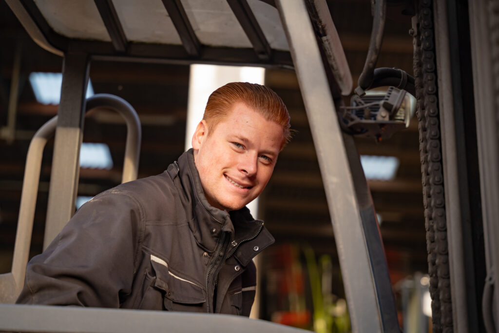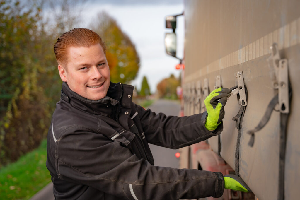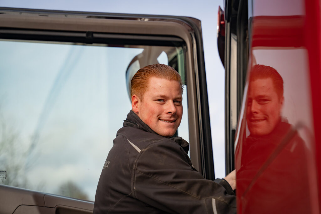 Tussendoor vertelt hij over zijn achtergrond. Hij groeide op in de fouragehandel van zijn vader en wist al jong dat hij chauffeur wilde worden. Inmiddels rijdt hij al drie jaar met veel plezier. “Ik hou van de afwisseling. Geen dag is hetzelfde.”