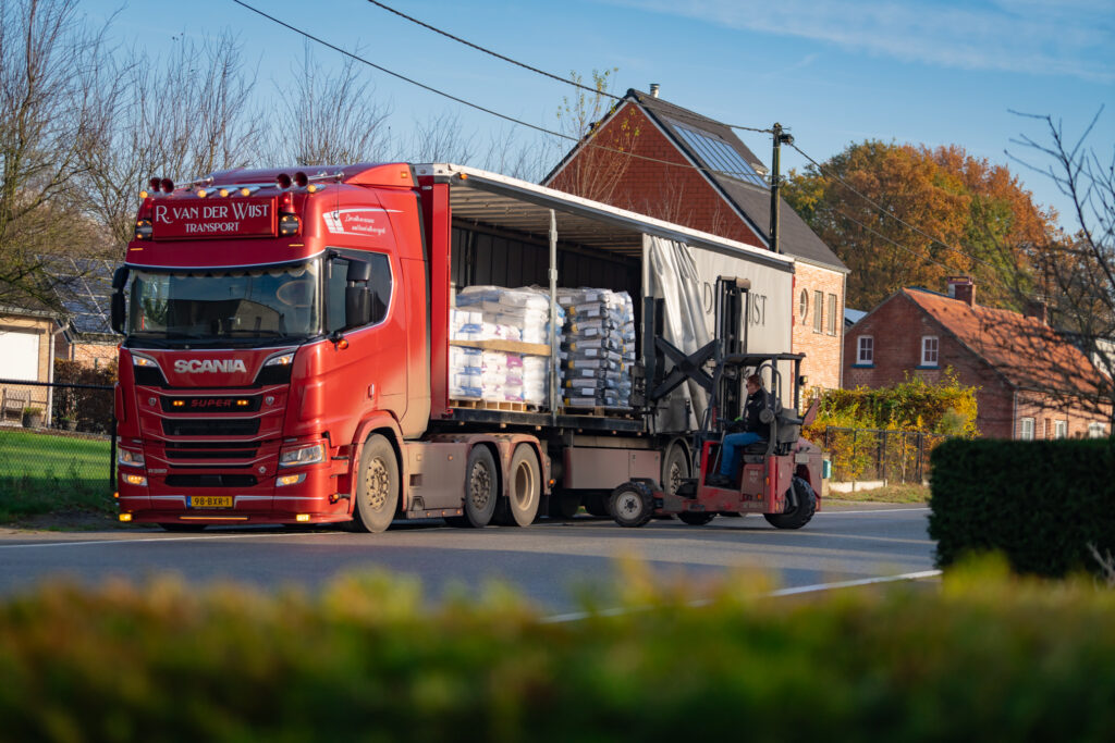 Als fotograaf in transport en logistiek zie ik vaak hoe chauffeurs moeten schakelen tussen precisie en improvisatie. Thomas manoeuvreert de truck vlot over landweggetjes en laadt en lost met zijn kooiaap alsof het kinderspel is. Boekel, Ospel, Lommel, Hoogeloon – de adressen volgen elkaar in rap tempo op.