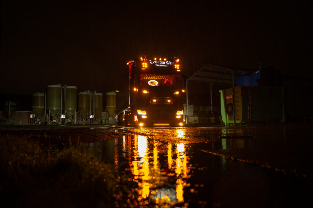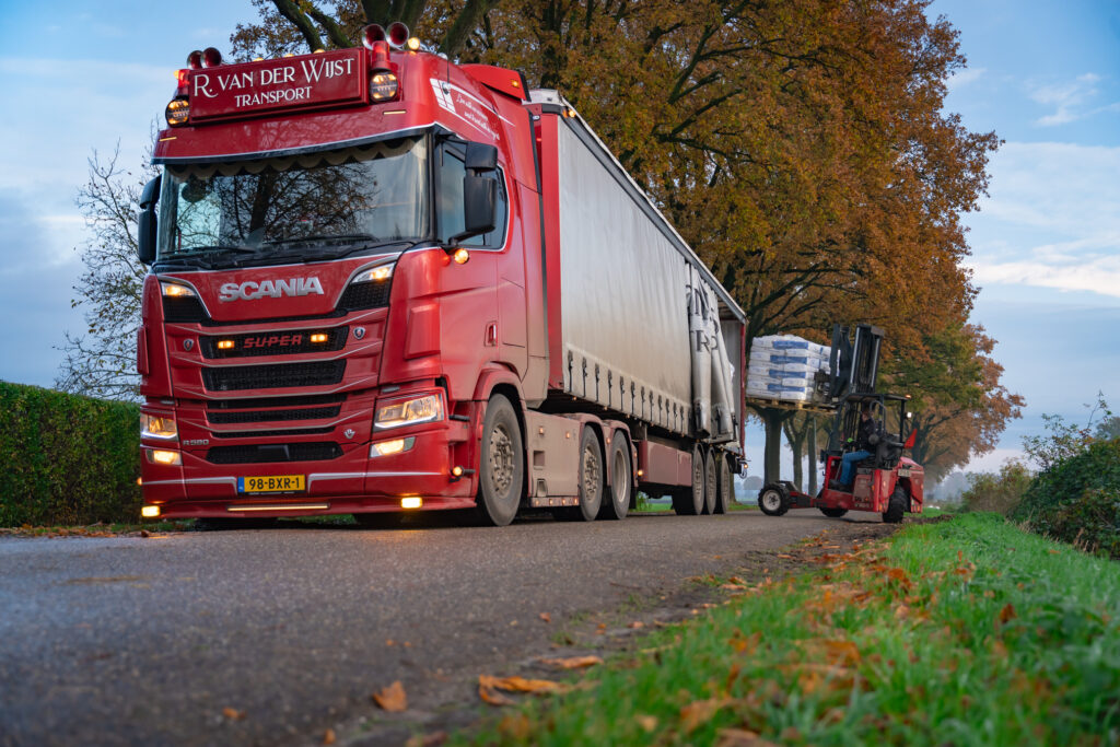Als reportagefotograaf in de transport en logistiek stap ik regelmatig in bij bevlogen chauffeurs die elke dag het verschil maken. Deze keer ging ik mee met Thomas van den Berk (23) uit Hedel. Hij rijdt voor Rick van der Wijst Transport en heeft een bijzonder kantoor op wielen: een splinternieuwe Scania R590 V8 – donkerrood, krachtig en stijlvol ingericht door Truckstyling Lunteren.