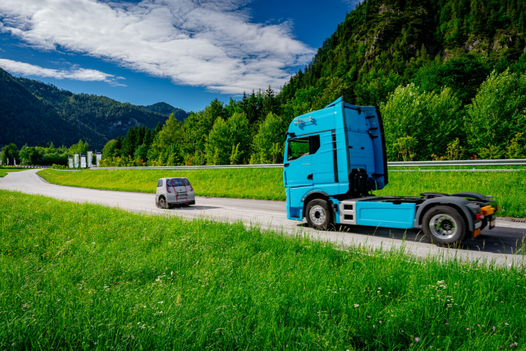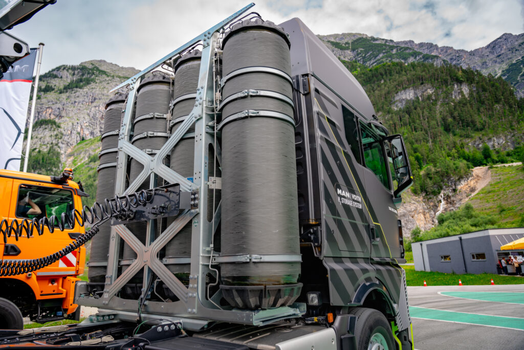 Ik rijd nog regelmatig zelf, dus in een truck stappen voelt voor mij als thuiskomen. Maar wat deze dag zo bijzonder maakte, was het directe vergelijk: je rijdt de ene ronde met een klassieke diesel, de volgende in een fluisterstille eTGX, en daarna stap je in een waterstoftruck die klinkt als een oude vertrouwde V8. En dat allemaal tegen het decor van de Oostenrijkse bergen. Klinkt als een droom? Was het ook.