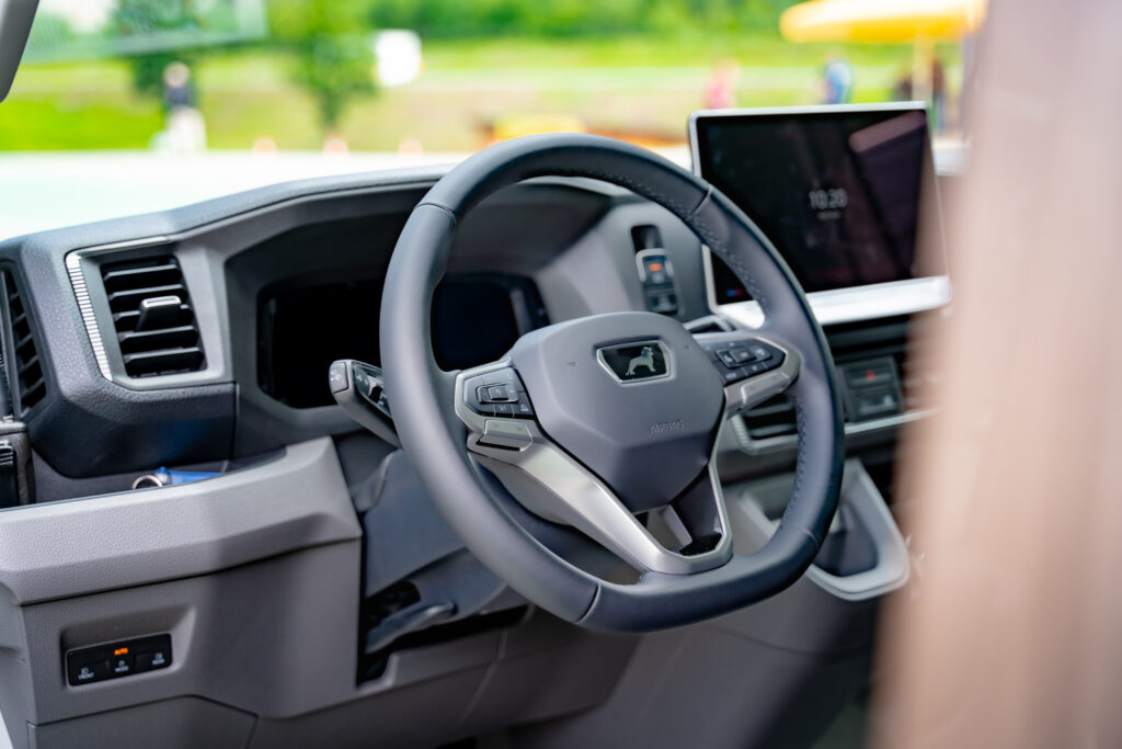 De MAN eTGX reed muisstil, bijna onwennig, maar heerlijk soepel. Je merkt meteen dat elektrisch rijden een andere manier van plannen vraagt. Maar het comfort, de rust – zeker in combinatie met het MAN-interieur – maakt veel goed.
