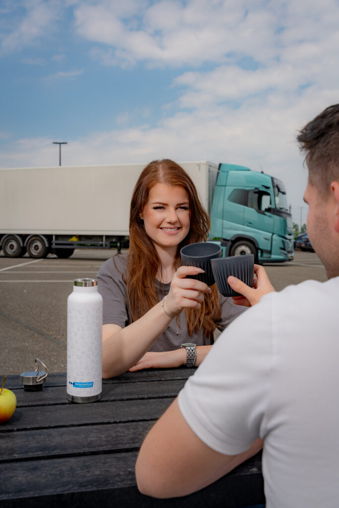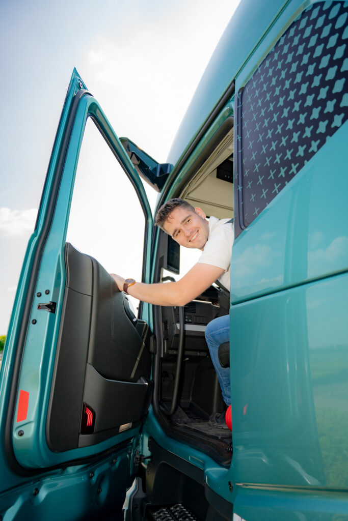 Voor deze shoot werkte ik samen met Volvo Trucks Nederland, die speciaal voor de gelegenheid hun nieuwste trucks beschikbaar stelde. Ook regelde ik twee échte vrachtwagenchauffeurs als modellen – want juist mensen uit de praktijk maken het beeld geloofwaardig. Geen acteurs, maar mensen die weten hoe het is om in de cabine te zitten.